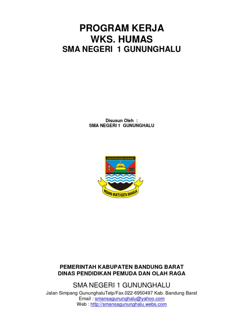 Program kerja wakasek urusan humas sma negeri 1 gununghalu tahun pelajaran 2009 2010 keterlibatan seluruh anggota masyarakat sekolah guru karyawan siswa orang tua murid masyarakat lingkungan perguruan tinggi dan lembaga pemerintah beserta swasta yang terkait proses pembelajaaran dapat berlangsung dengan baik dan efektif. Program kerja adalah susunan daftar kegiatan yang dirancang untuk di laksanakan dalam satu periode kepengurusan.