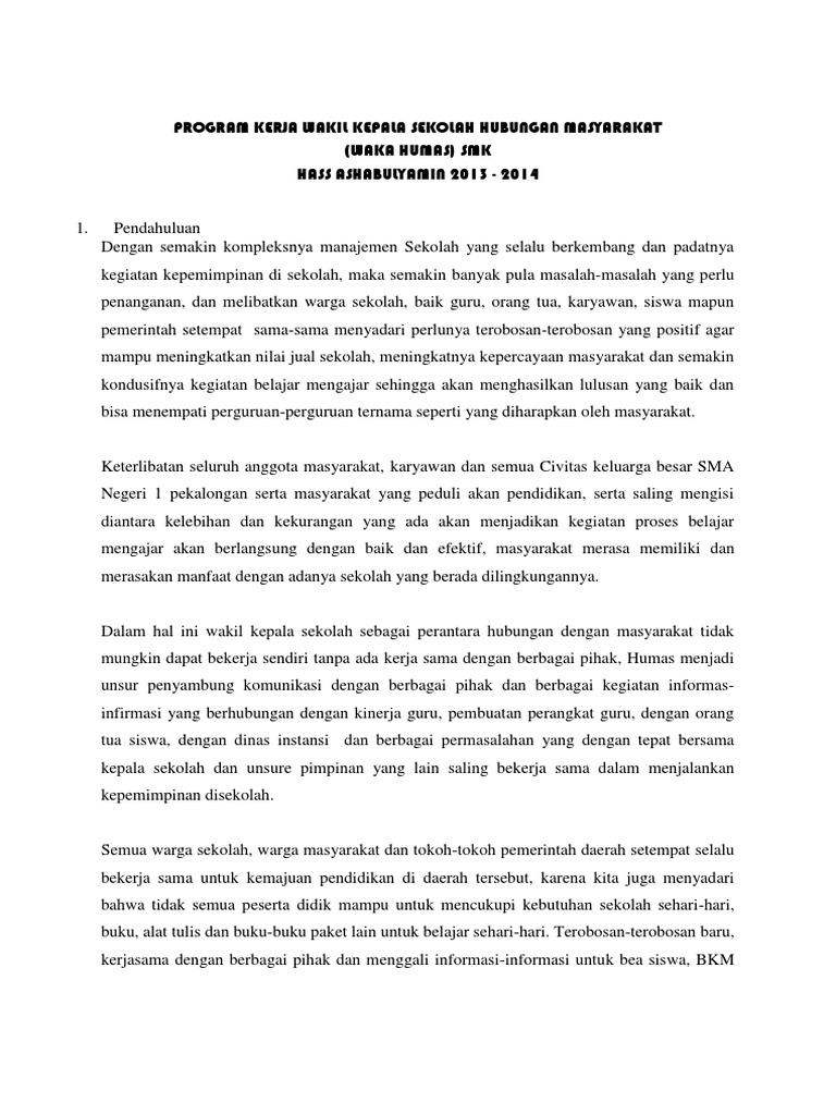 Contoh Program Kerja Kepala Sekolah Bidang Humas Hubungan Masyarakat Doc