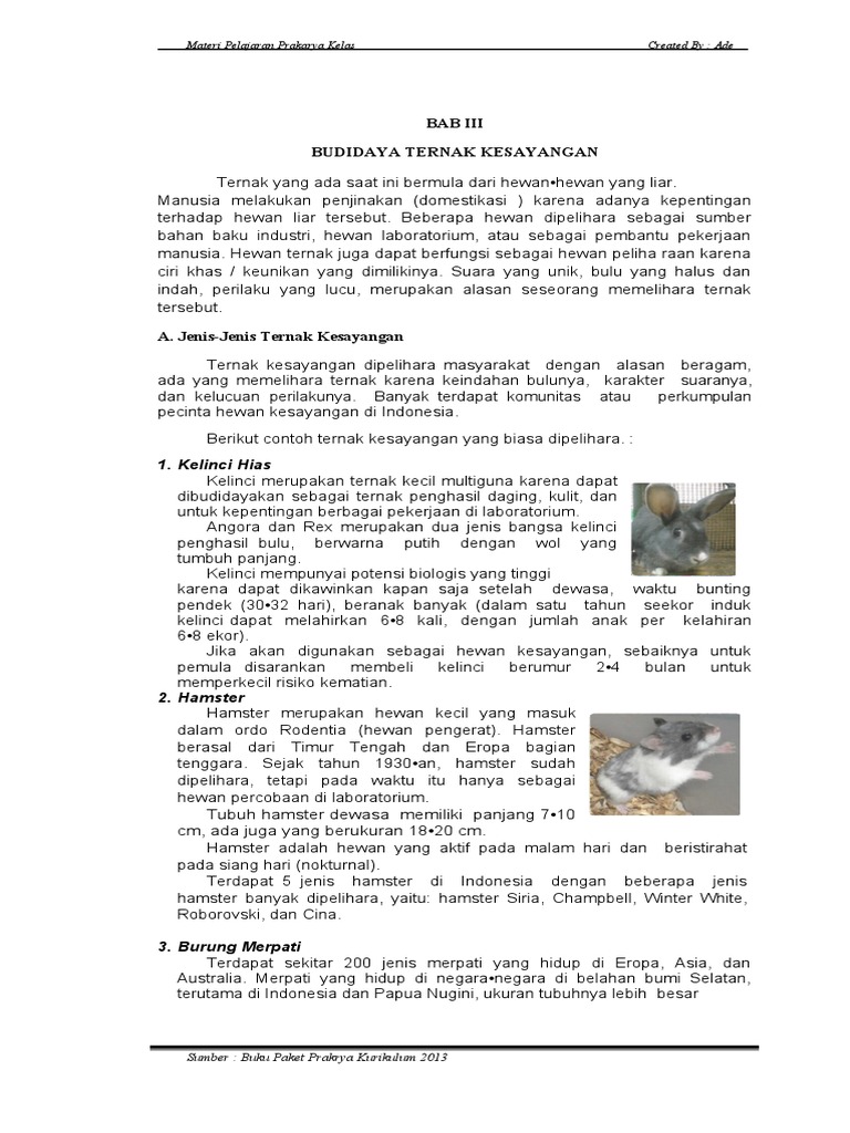 Bab Iii Prakarya Kelas 8 Budidaya Ternak Kesayangan
